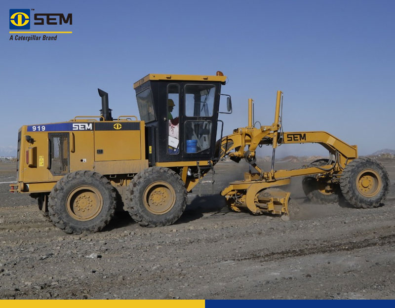 The SEM 919 Motor Grader leverages on Caterpillar designing and experience on MG tandem axle. Comes with 7 position link bar with electric over hydraulic control allows ease of operation from within the operator cabin.